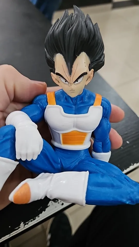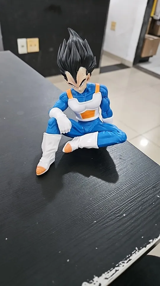 - Ruhige Pose: Vegeta wird in einer entspannten, sitzenden Haltung dargestellt, die seine tiefgründige und nachdenkliche Seite zeigt.