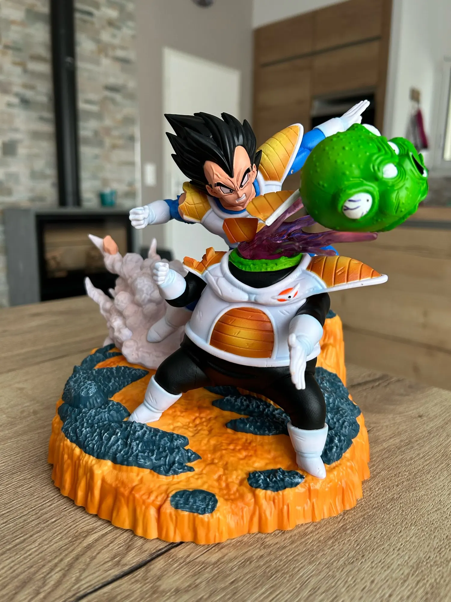- Detailgetreue Gestaltung: Jede Nuance von Vegeta, von seiner markanten Saiyajin-Rüstung bis zu den fein modellierten Gesichtszügen und den dynamischen Details des Kampfes, ist sorgfältig ausgearbeitet.